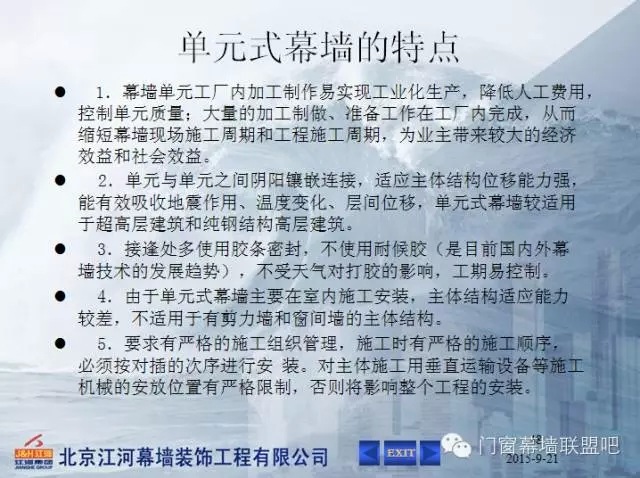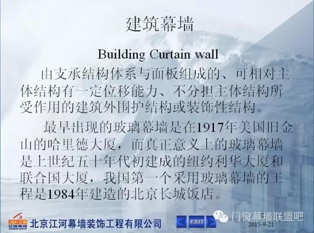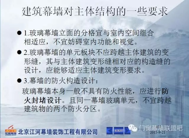 因为目前很多设计院对幕墙设计及工艺是不了解的,想顺利的让建筑师在你的图纸上签字同意施工,你就必须给他幕墙设计施工工艺,这个是江河特意针对设计院的讲稿!