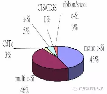光伏电池主要分为:单晶硅、多晶硅和薄膜电池。其中单晶硅光电转换效率最高,多晶硅其次,薄膜最低(a-Si非晶硅,CdTe碲化镉,CIS铜铟硒)。