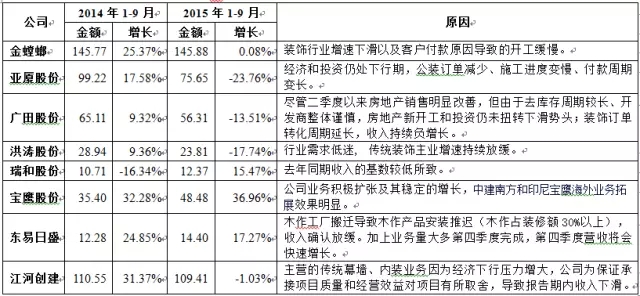 2015年装饰行业上市公司 三季度报比较分析报告