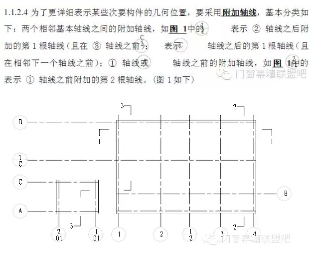 1.1.2.3基本定位轴线一般通过建筑构件的中心线,一般分:横向轴线(从左向右)以阿拉伯数字表示在轴线尽端的圆圈内;竖向轴线(从下到上)以大写英文字母表示。