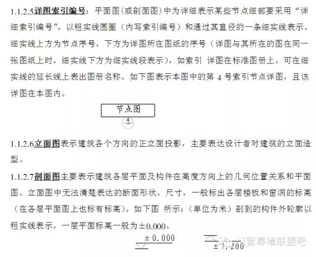 1.1.2.1建施图:幕墙设计主要参考有建筑设计总说明、总平面图、各层平面图、立面图、剖面图、节点构造详图、透视效果图。