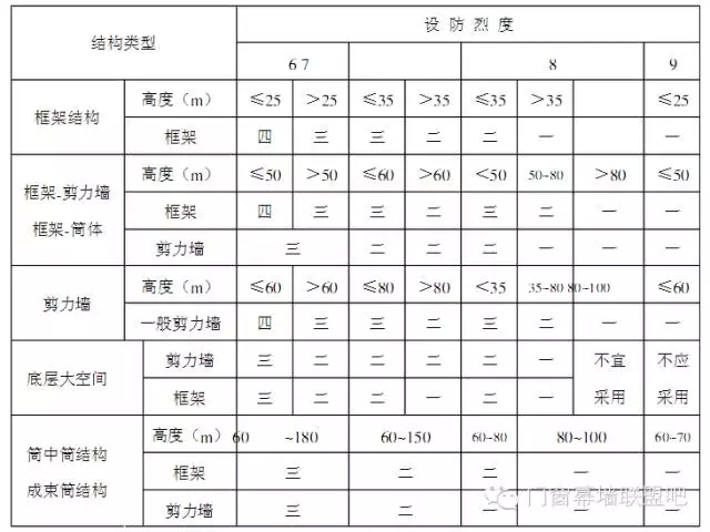 1.4.4.4 钢筋混凝土建筑结构抗震等级选用