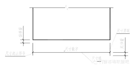 2.4.16.4分格、立框、埋件图样的尺寸起止符号均采用粗斜短线绘制,其倾斜方向与尺寸界限成顺时针45°角。