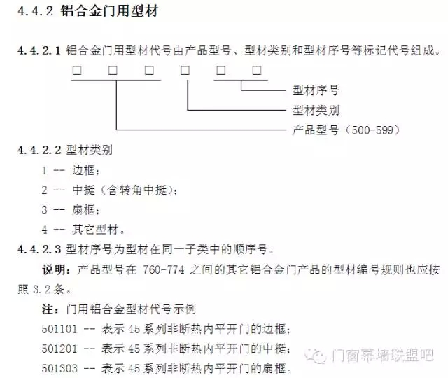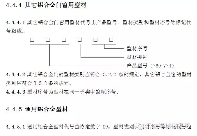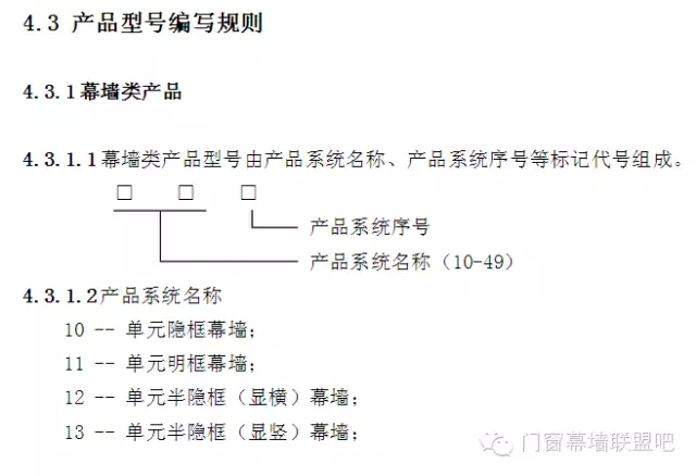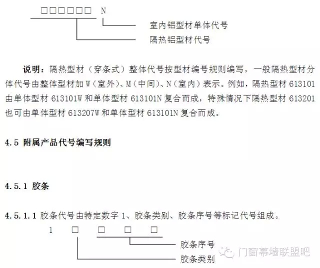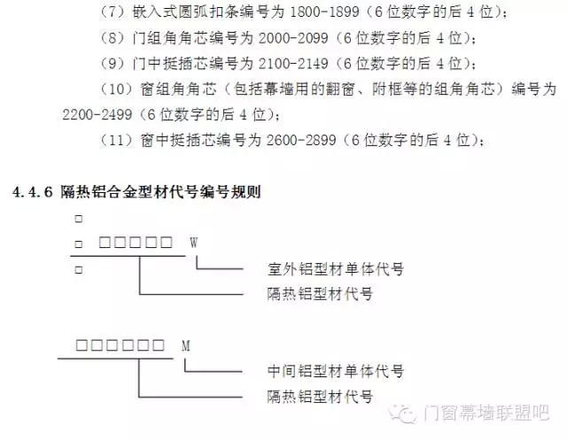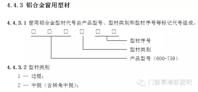 4.幕墙、门窗定型产品 产品型号及材料代号编写规则