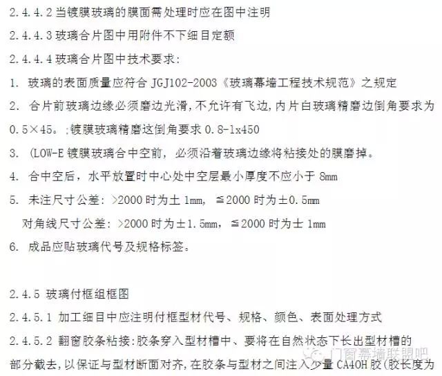 2.4.4.1分格、立框、埋件图、节点图样按《建筑制图标准》(GBJ104-87)标准绘制。