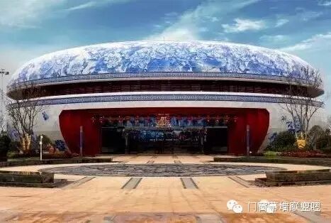 建筑简介:建筑高度78米,方案以天山雪莲为原型,通过抽象与创新,形成里外层套的穹顶造型的主体形象。主体建筑坐落在平缓的台基上,神似一朵天山脚下的含苞欲放的雪莲花。大剧院外饰面采用黄褐色金属光泽的材质,内核金色砖纹肌理。