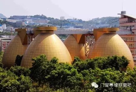 建筑简介:重庆南岸区鸡冠石污水处理厂的四个污泥处理装置身披土豪金外衣,圆圆望去,酷似一个个金蛋。