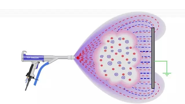 是用喷粉设备(静电喷塑机)把粉末涂料喷涂到工件的表面,在静电作用下,粉末会均匀的吸附于工件表面,形成粉状的涂层;粉状涂层经过高温烘烤流平固化,变成效果各异(粉末涂料的不同种类效果)的最终涂层。