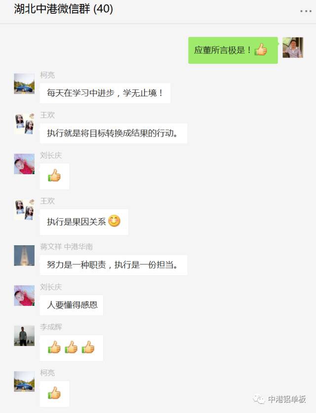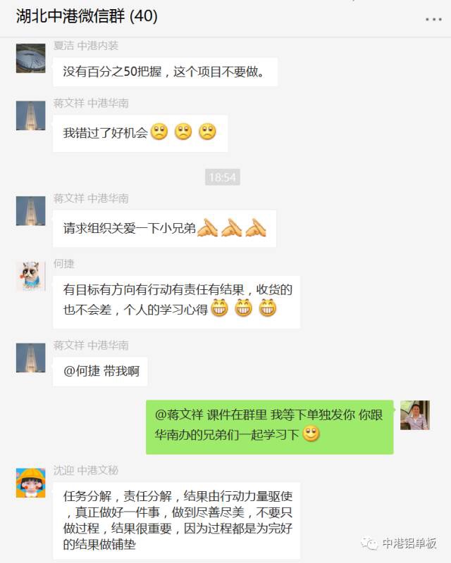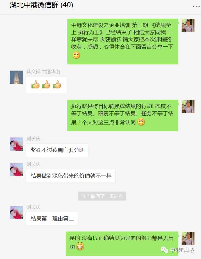 课程结束后,中港的同事们感触极深,所获良多,大家在公司的工作群里又展开了热烈的讨论,分享心得,交流体会,掀起了学以致用,提升自我的热潮。